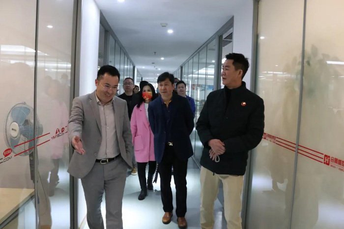 在豐華集團,走訪團隊得到副主席盧沛芳的熱情接待,先后參觀公司各個功能區域。在公司部門負責人的介紹下,走訪團隊詳細了解過去一年企業的發展形勢、地產項目、前景規劃等方面,悉心傾聽企業所思所急及對商會工作的意見建議。